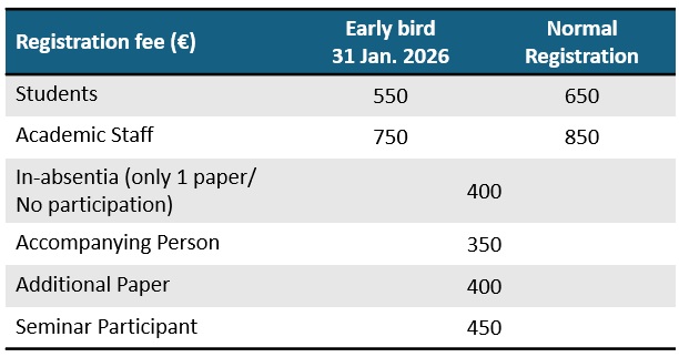 All presenting authors are required to pay the registration fee by March 15, 2026. Non-presenting participants must also complete their payments by this deadline, as on-site payments will not be permitted. Late payments after the conference will not be accepted, so please make sure to arrange your payment promptly.